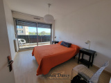 Belle entrée avec placards, séjour très lumineux grâce a ses grandes ouvertures donnant accès sur un balcon avec double exposition, cuisine ouverte, 2 belles chambres, une salle de douche carrelée et un wc.