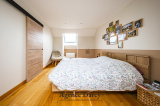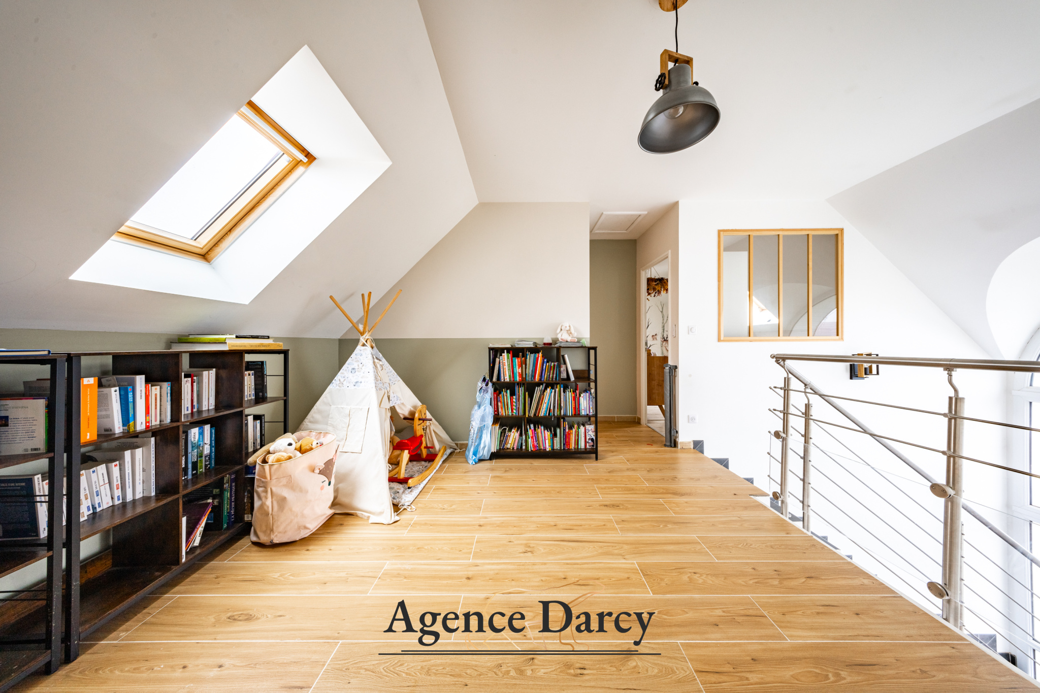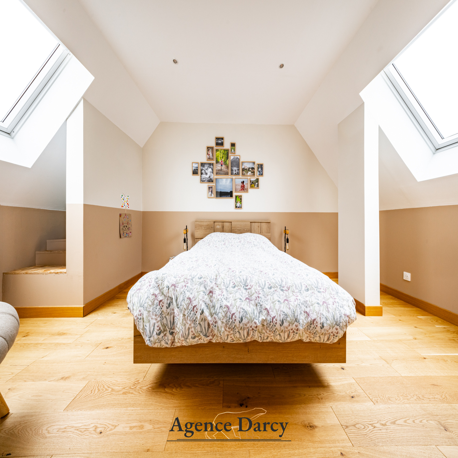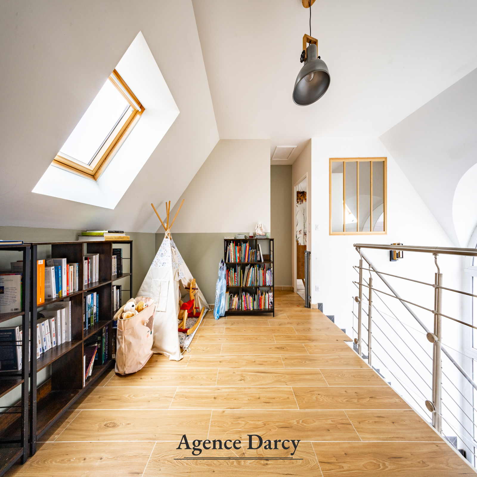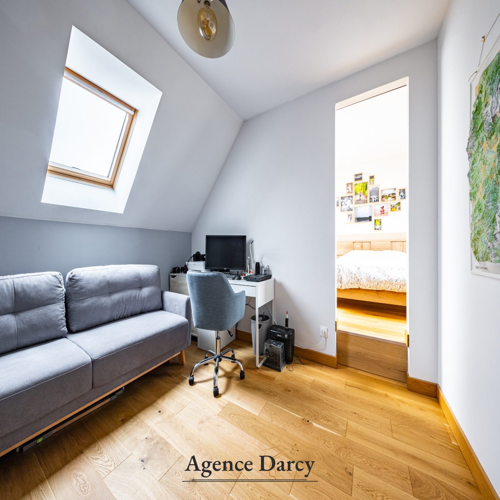 À l’étage, l’espace nuit se compose de trois chambres, dont une suite parentale, offrant un agencement confortable et fonctionnel pour toute la famille et un bureau.