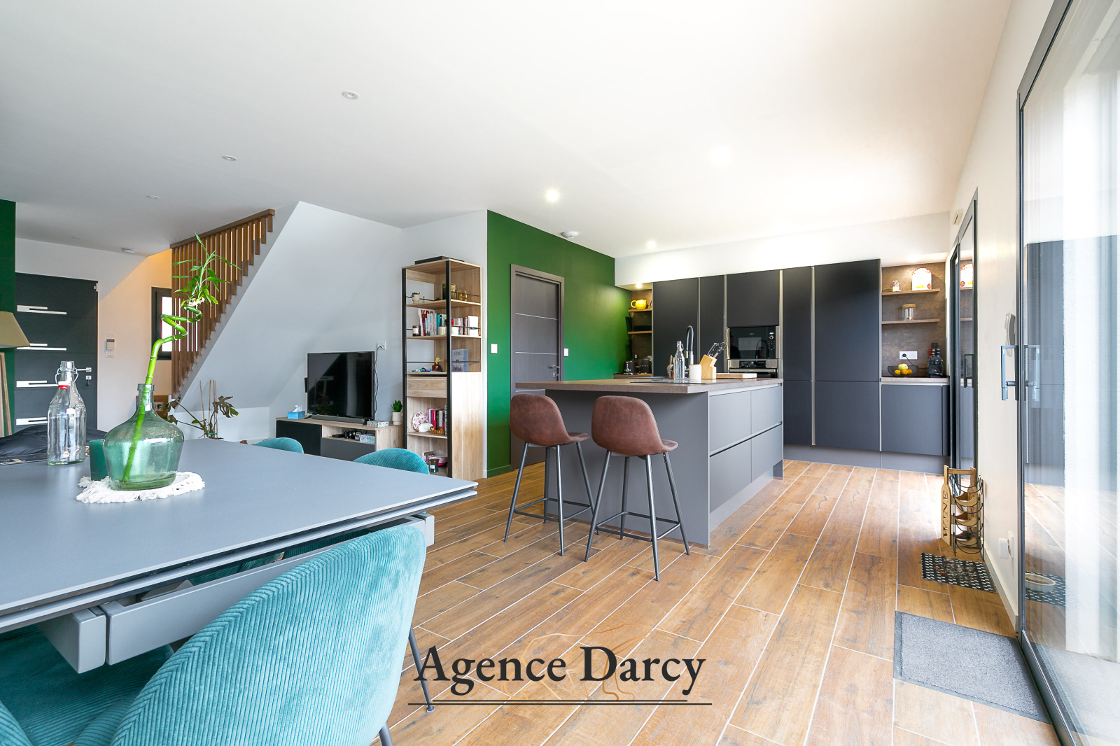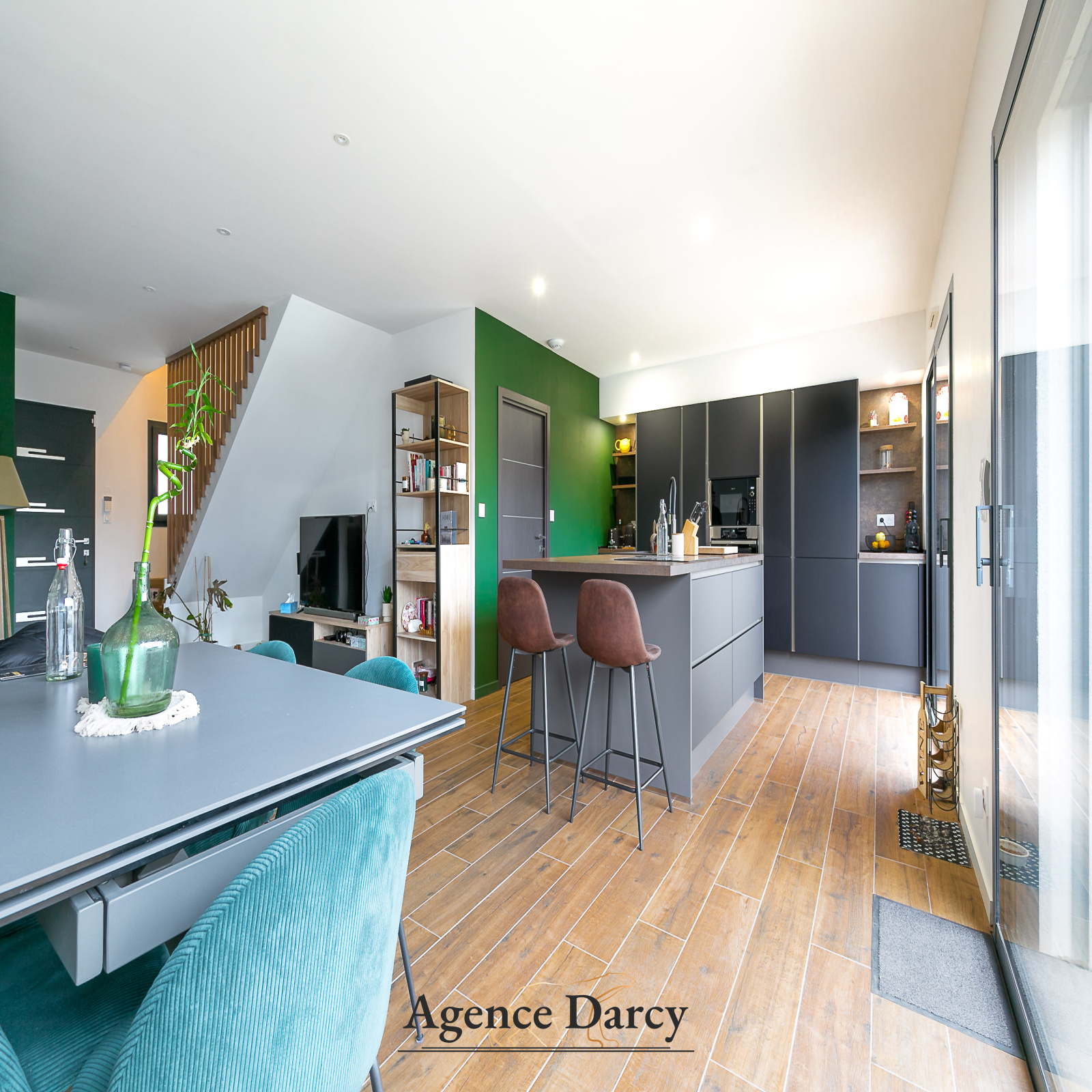 Au rez-de-chaussée, vous trouverez une grande pièce de vie avec une cuisine ouverte équipée donnant accès au jardin.