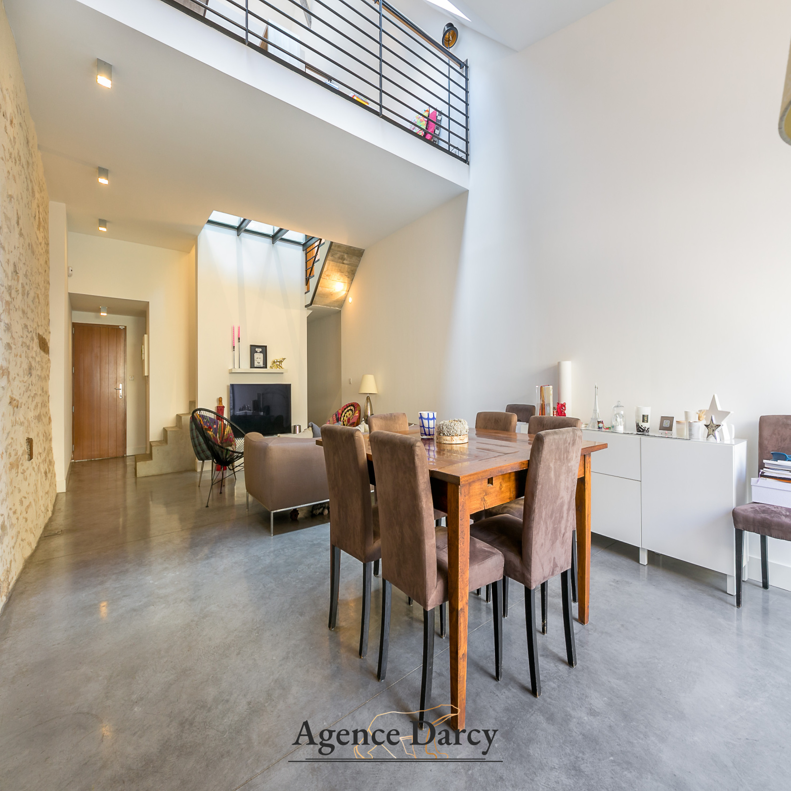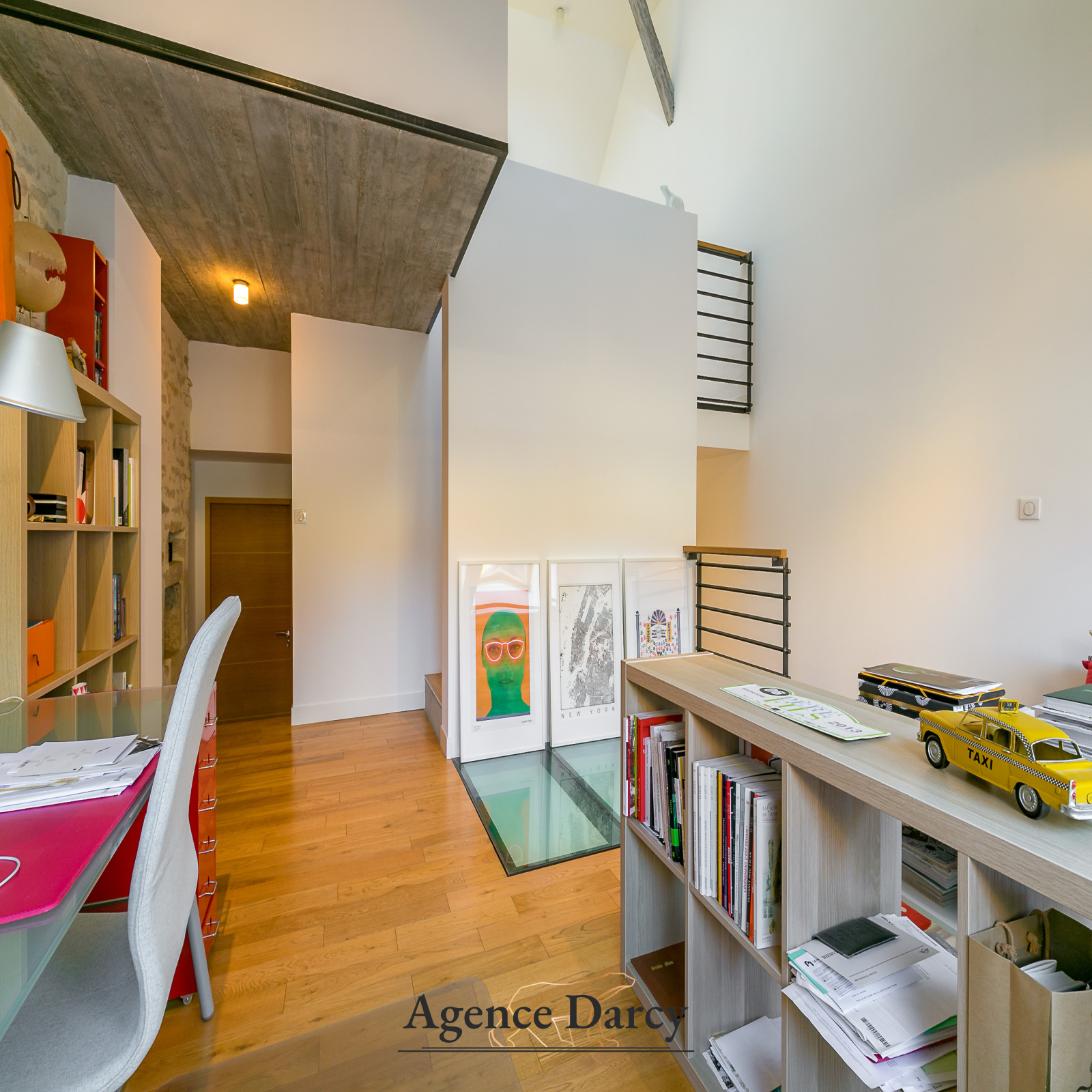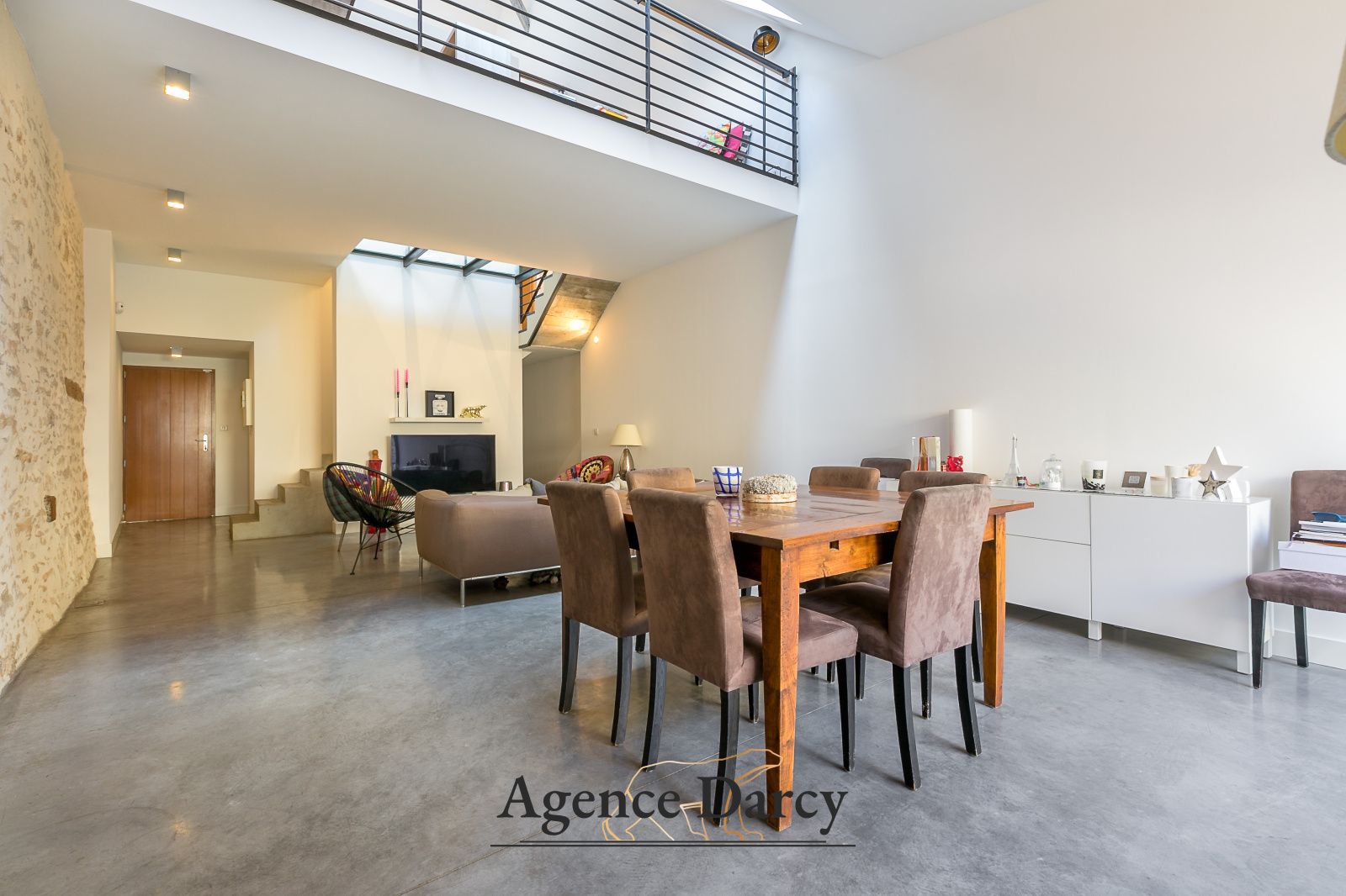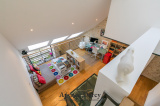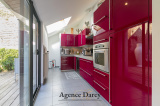 Salon-séjour cathédrale sur terrasse, cuisine équipée, 3 chambres sur 2 niveaux dont une suite parentale avec salle d'eau privative, bureau, salle de bain.